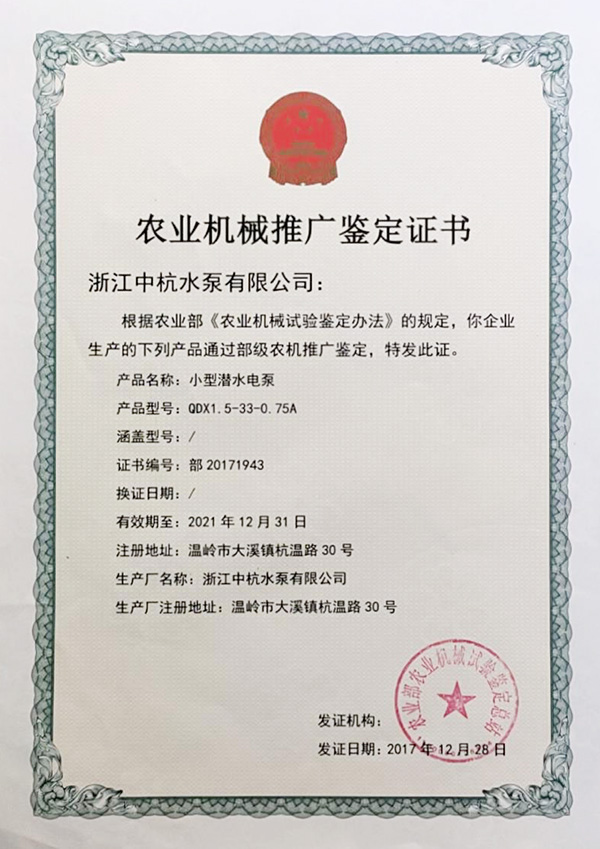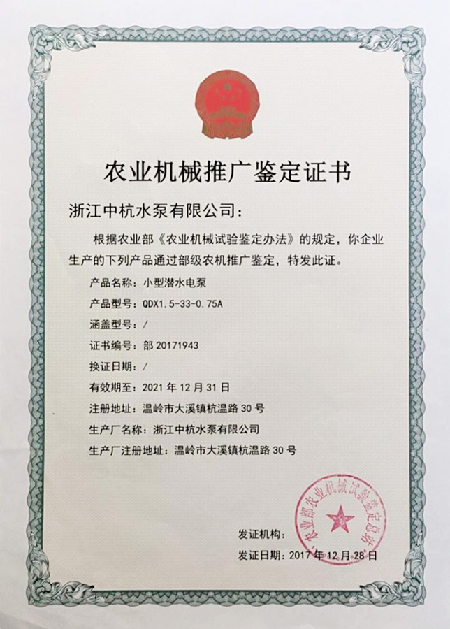 農(nóng)業(yè)機(jī)械推廣鑒定證書